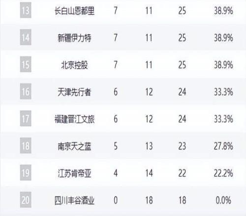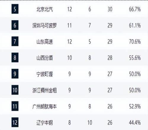 广厦领跑,广东第3,山东崛起逼近前4,辽宁跌至第12,2黑马很稳