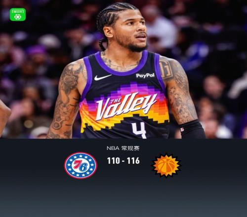 北京时间1月21日NBA 常规赛,费城76人对阵菲尼克斯太阳。半场76人53-57太阳,最终76人110-116太阳。
