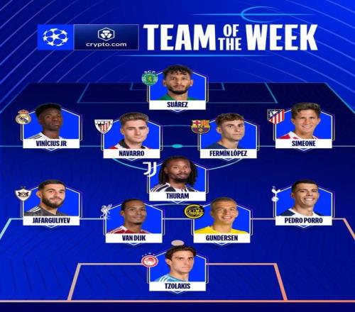 欧冠联赛阶段第7轮最佳阵容